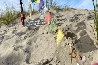 Wat ik zelf meemaakte was een beweging van het hoofd naar m’n lijf. Dat brengt het eiland al met zich mee: veel kilometers op de fiets en lekker lopen op het strand. Ik vond die beweging ook in een workshop, waar min of meer terloops een rake opmerking werd gemaakt over preken en liturgie. “De westerse praktijk begint in het hoofd. Een preek (of hoe je dat noemt) is een ideologisch verhaal. Maar hoe komt dat bij mensen aan? Als je iemands idee wilt veranderen door middel van woorden, kan het gemakkelijk weerstand oproepen. Liturgie is doen en voelen. Dat is een andere ingang.” Ik vond het een rake opmerking. Niet omdat ik zelf wil preken of per se iemands idee wil veranderen, wel omdat ik soms iets wil overbrengen. Daar zijn meer manieren voor dan alleen het gesproken woord.